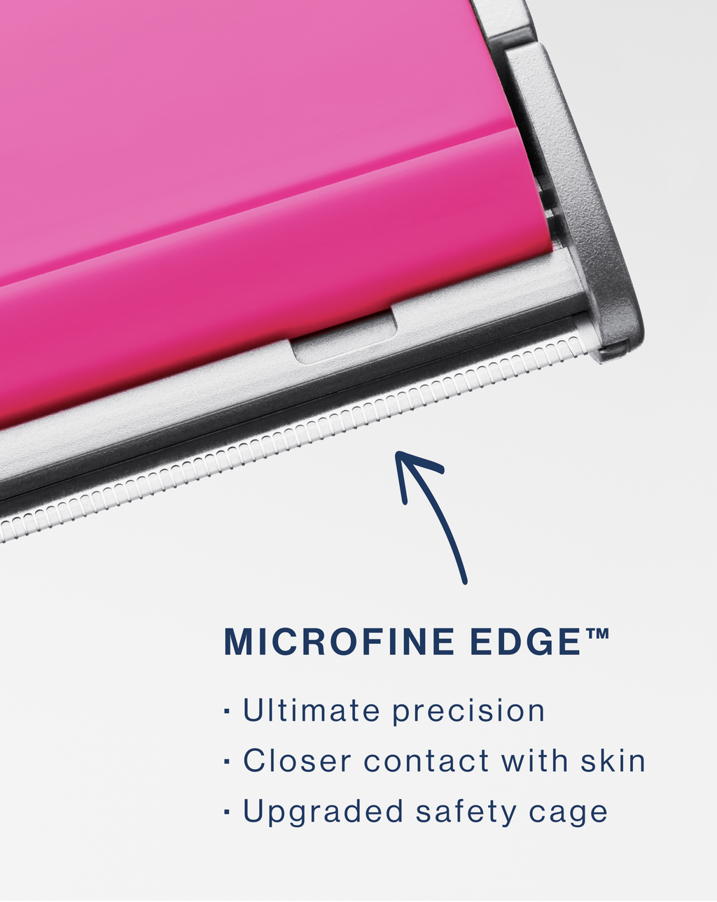 And don’t stress about nicks or scrapes. New Microfine Edges™ give you ultimate comfort + precision, while Proprietary Safety Features deliver maximum protection.