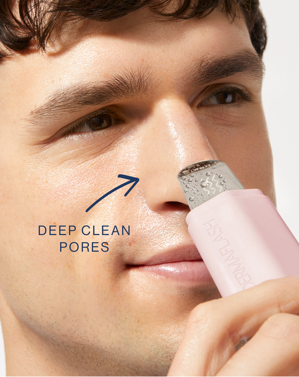Model using the DERMAPORE+ device in Stone on his cheek