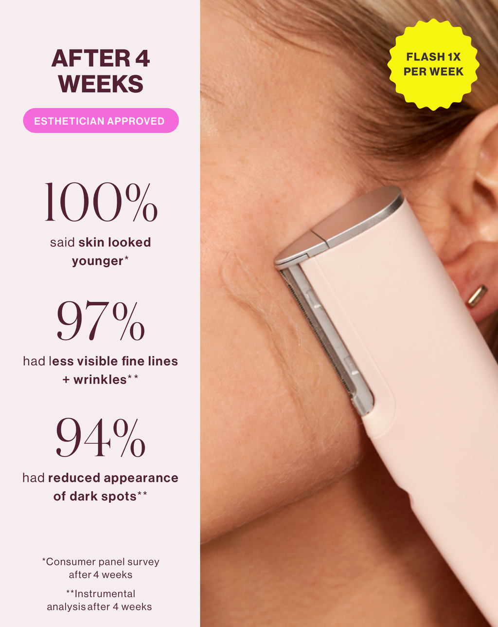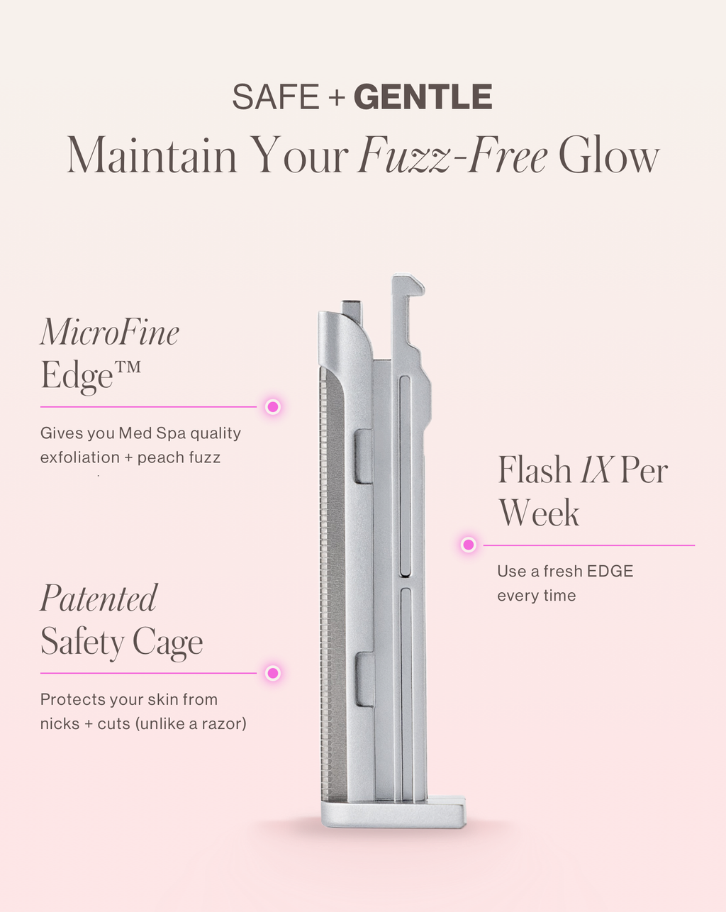 Over-exfoliating or using harsh exfoliating methods may disrupt your skin barrier and microbiome (the protective layer and ecosystem of beneficial microorganisms on your skin). DERMAFLASH LUXE+Sonic Dermaplaning is a gentle form of exfoliation that only needs to be done once a week—making it ideal for those who want to remove peach fuzz and dead skin cells without compromising the skin’s microbiome.